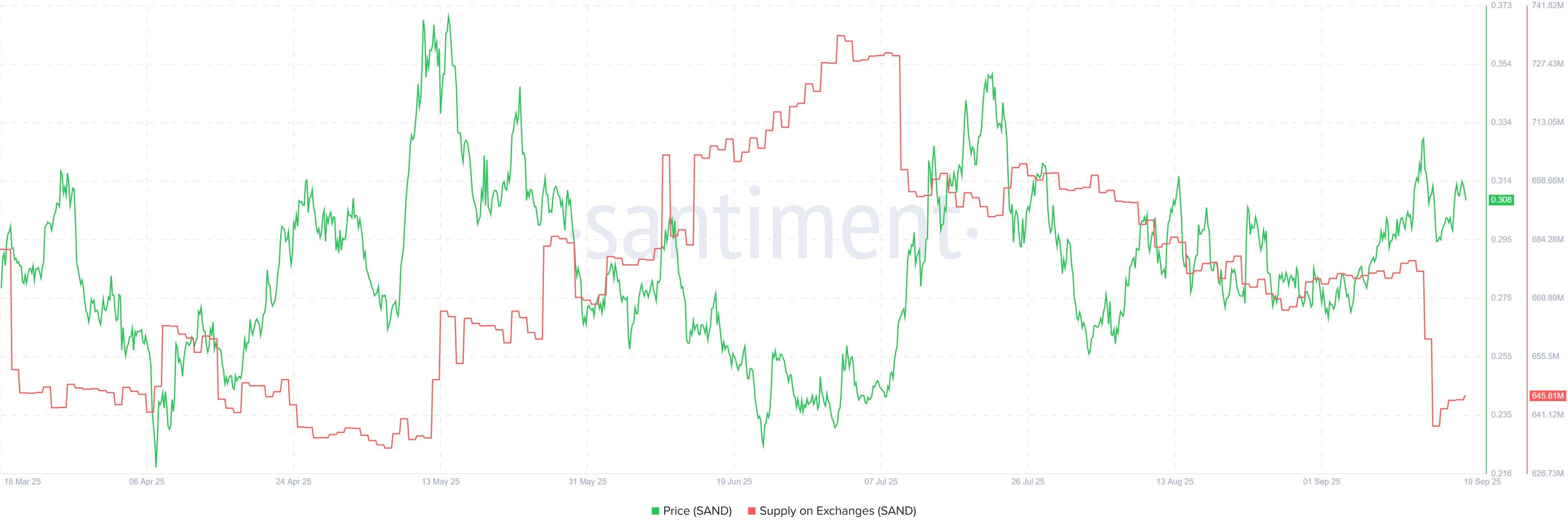 A bullish sign emerged in September as exchange reserves dropped near yearly lows. In this quarter alone, around 850 million SAND left exchanges.