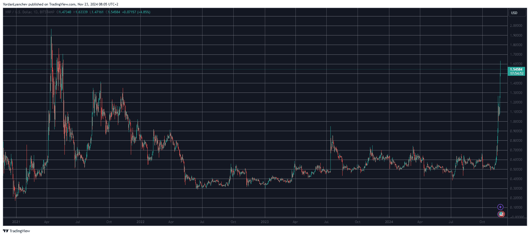Perhaps the most valid reason behind XRP’s increase to over $1.6 earlier today is the hype by Gary Gensler’s announcement from Thursday evening. At the time, the current SEC chair said he would leave his position on the day the president-elect, Donald Trump, is inaugurated on January 20, 2025.