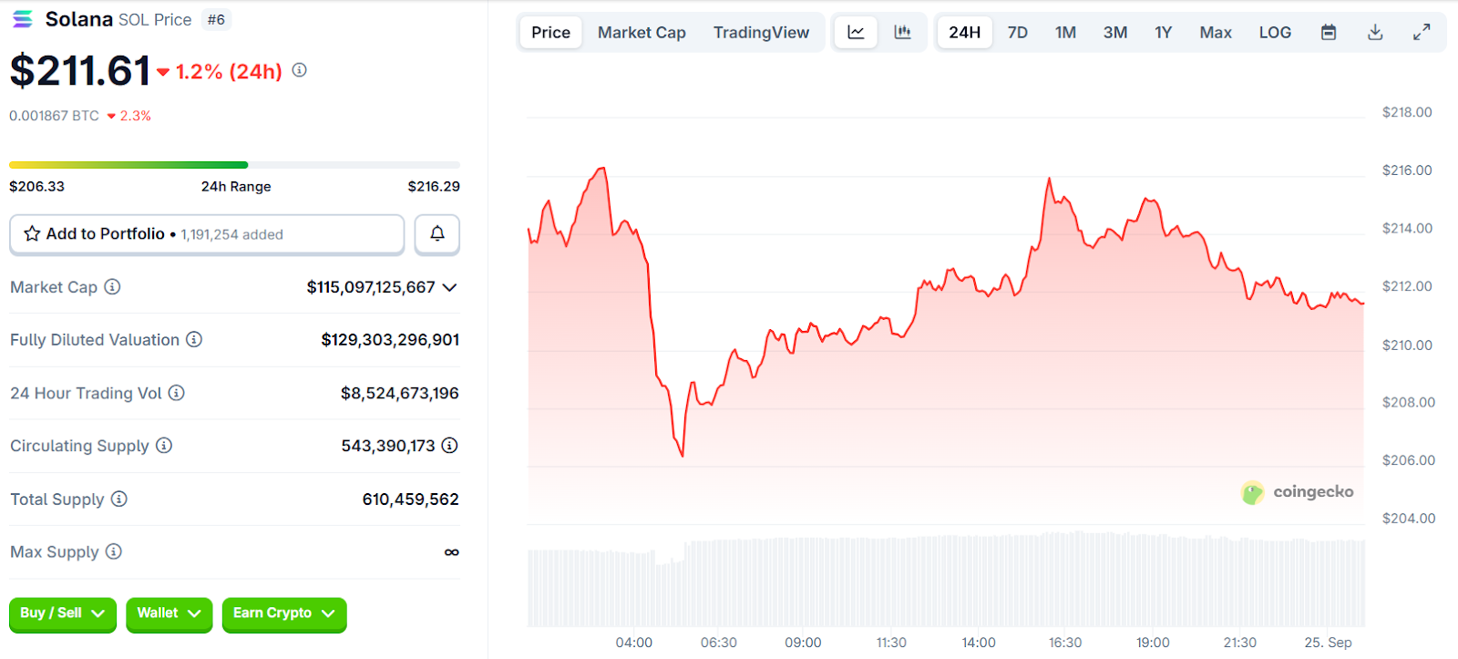 Solana Price Chart | Source: CoinGecko