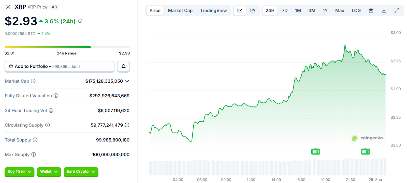 XRP Price Chart | Source: CoinGecko