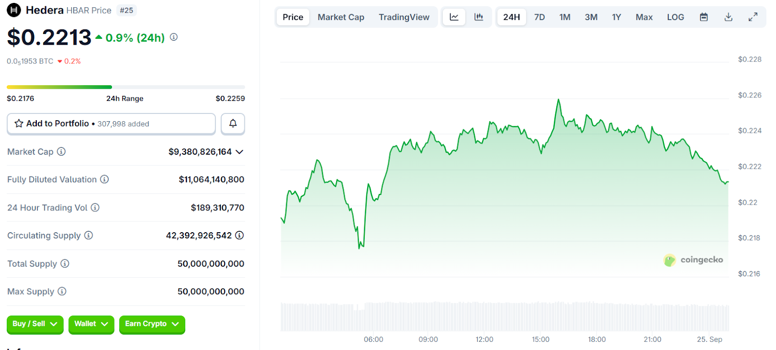 Hedera Price Chart | Source: CoinGecko