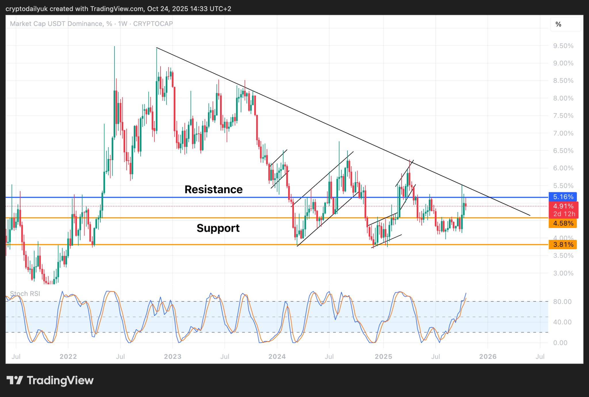 USDT dominance continues downtrend