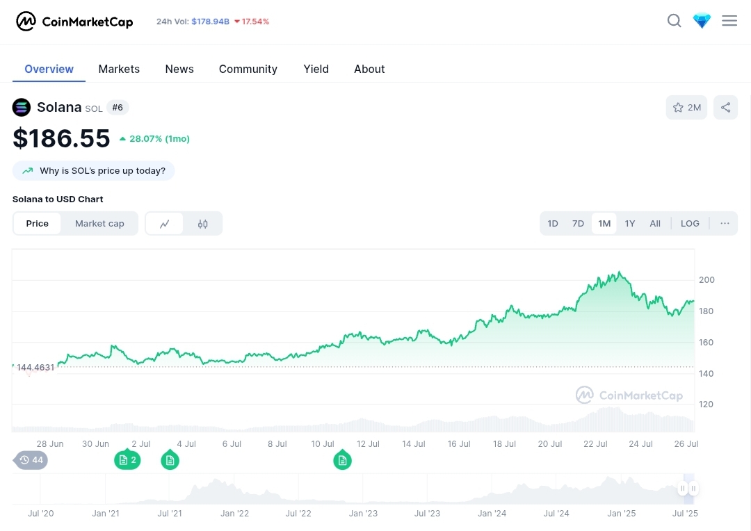 SOL’s price has bounced back in 2024. Some think it could reach $300 by 2025 if the bull market holds.