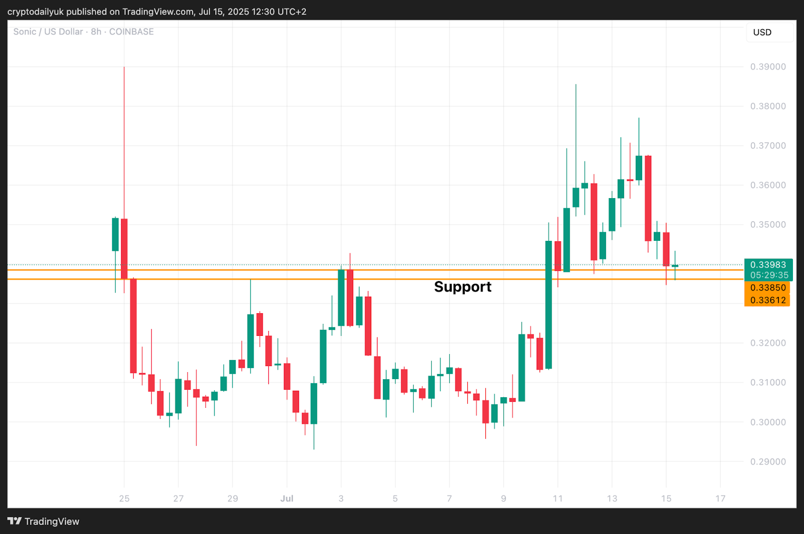 Sonic $S is more of a long shot, given its much lower position of 75 on the market cap rankings. Also, there is much less data to go by. That said, it can be seen that the price has come down to the strong support at $0.33, and is looking as though it might bounce from here. Nevertheless, falling through this band could spell a lot of hurt to come for $S bulls. To the upside, getting above $0.368 would be an important achievement.