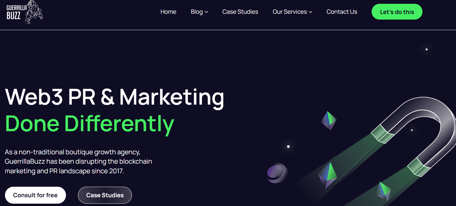 GuerrillaBuzz stands out for their unconventional tactics. They combine viral stunts with SEO-first PR campaigns, helping crypto projects dominate search rankings.