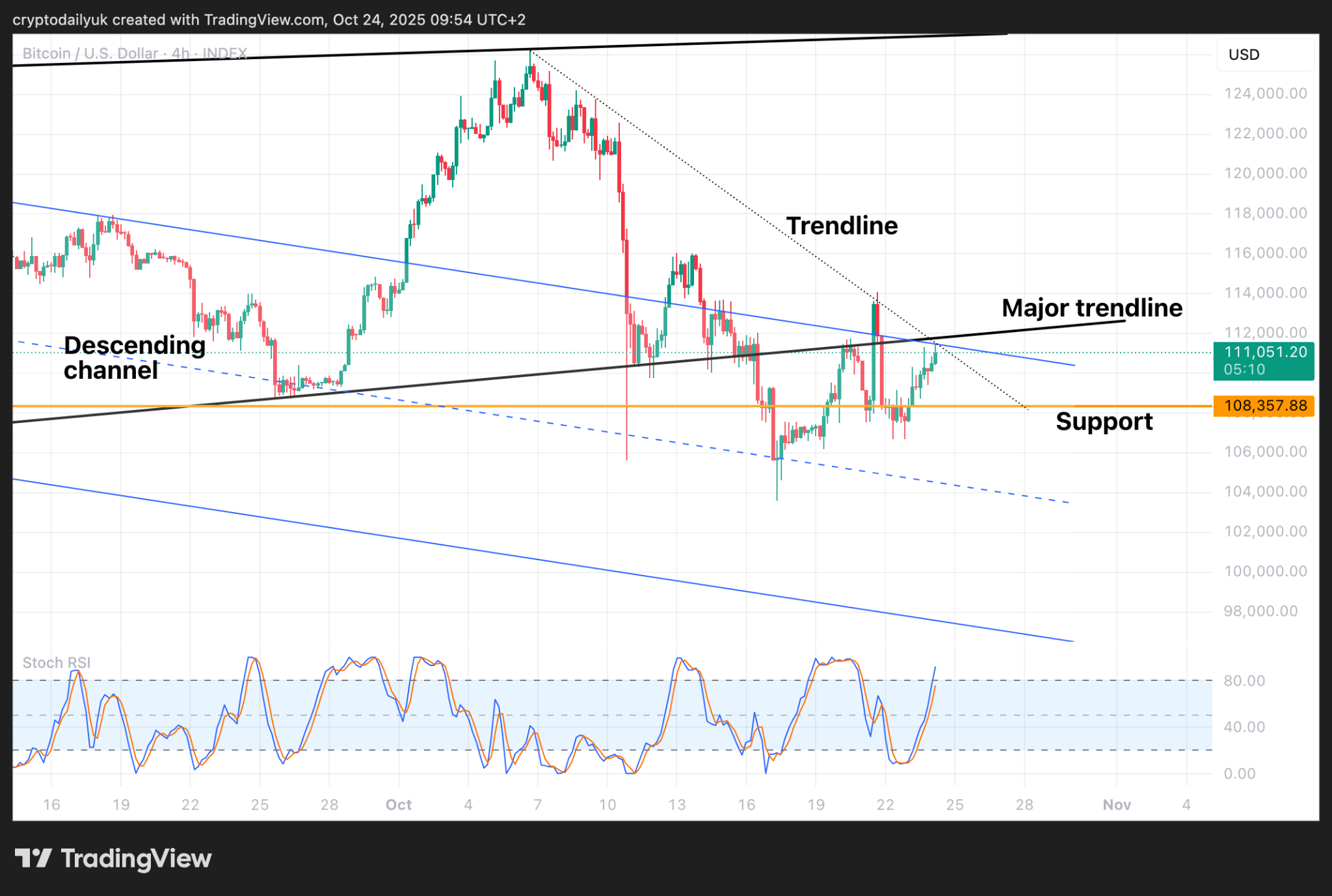 All this said, we have already seen in the 4-hour chart that there is a good likelihood that the $BTC price will be rejected from the trendline. This still remains to be seen.