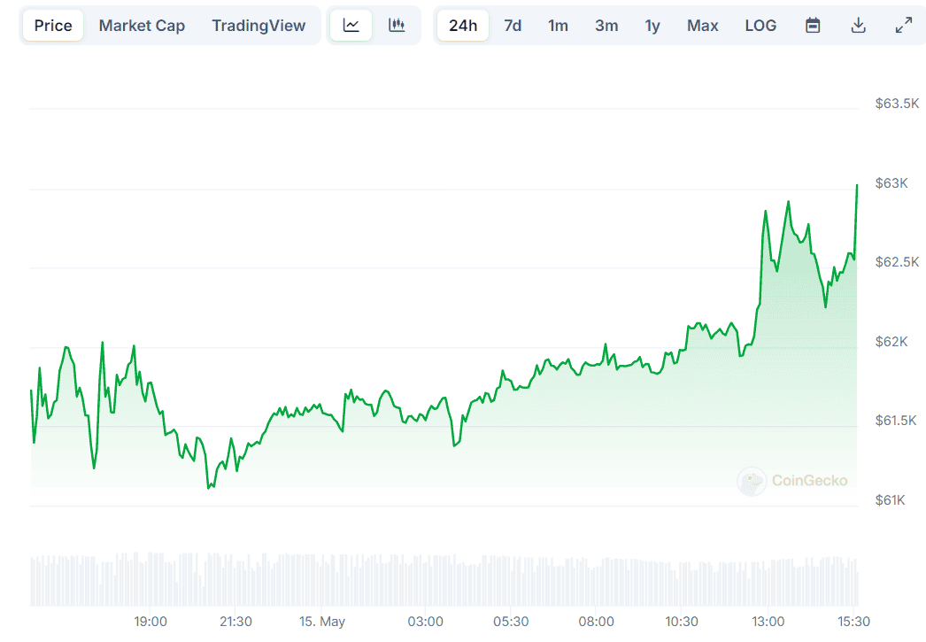 The price of the primary cryptocurrency slightly increased after the US Bureau of Labor Statistics released the latest Consumer Price Index (CPI) data. It spiked to almost $64,000, witnessing a 4% surge on a 24-hour scale.