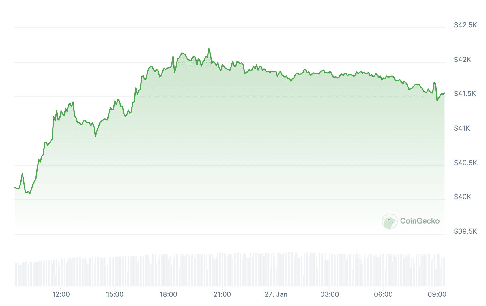 At the time of this writing, Bitcoin’s price is trading at around $41.5K, charting an increase of 3.4% in the past 24 hours.