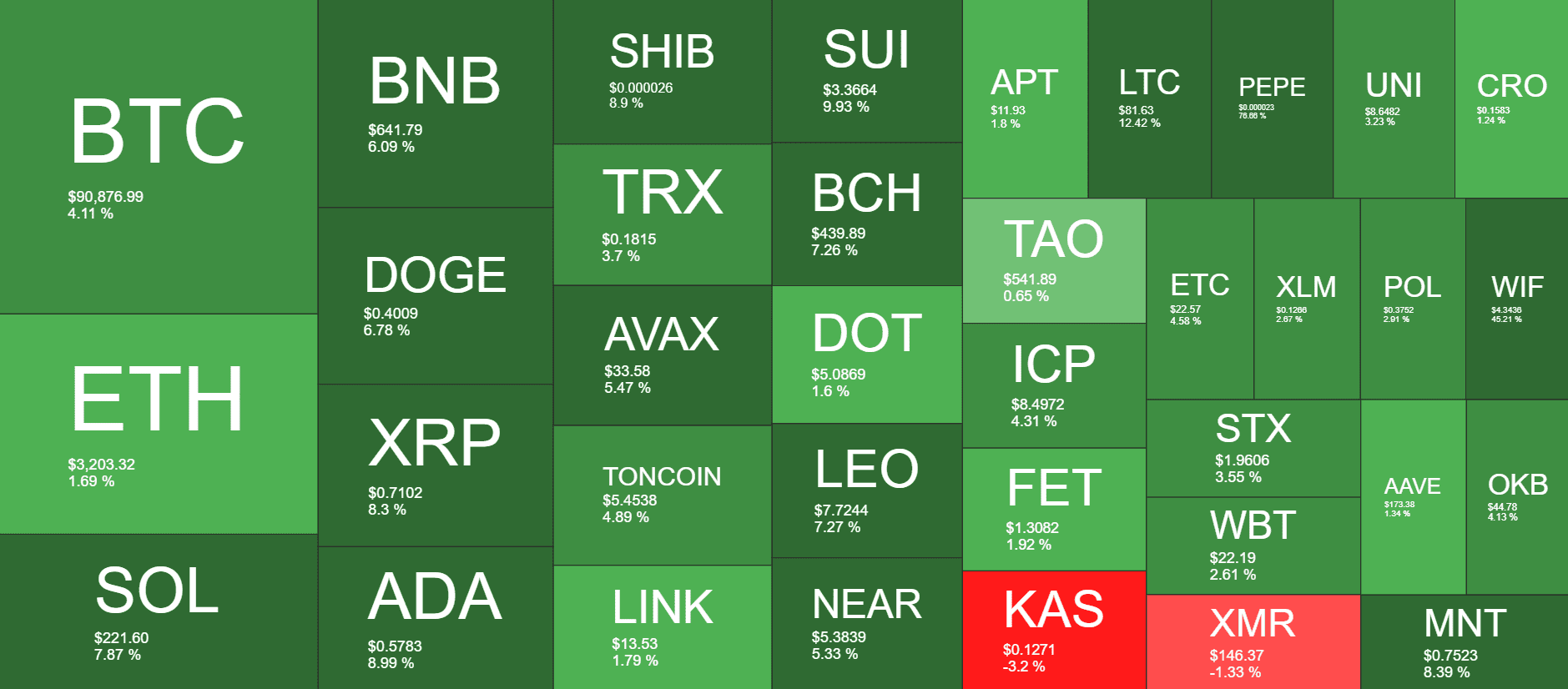 The altcoins have also turned green over the past day, with impressive gains from the likes of SOL, ADA, XRP, DOGE, BNB, SHIB, AVAX, SHIB, BCH, and LEO. All of those have increased by up to 10%.