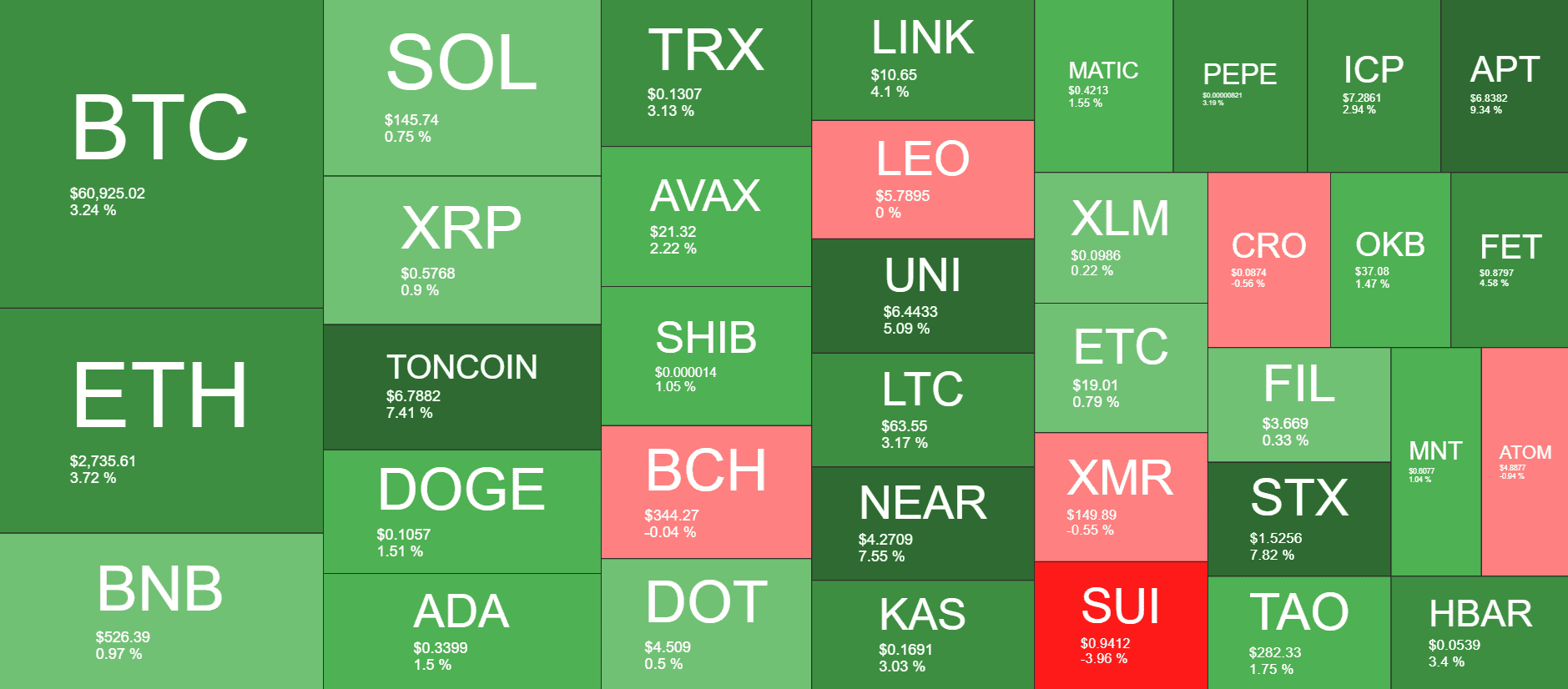 The post Bitcoin Price Eyes $61K After Promising PPI Numbers, Toncoin Rises 7% (Market Watch) appeared first on CryptoPotato.