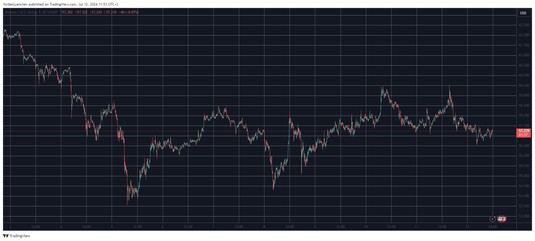 However, the US CPI numbers (yesterday) came back to be better than expected. This resulted in an immediate price surge to a multi-day peak of $59,500. Once again, though, the bears came out of the woods and propelled another leg down, which drove BTC south by more than two grand.