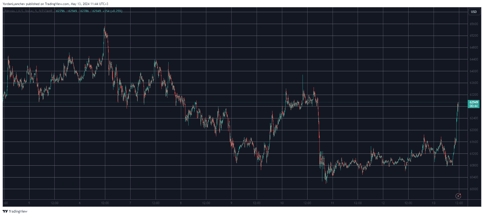 It was last Monday when the primary cryptocurrency jumped to a 12-day peak of $65,500 but was quickly stopped at this point as the bears resumed control of the market. In the following days, the asset saw its price decline by several thousand dollars to $60,800 by Thursday.