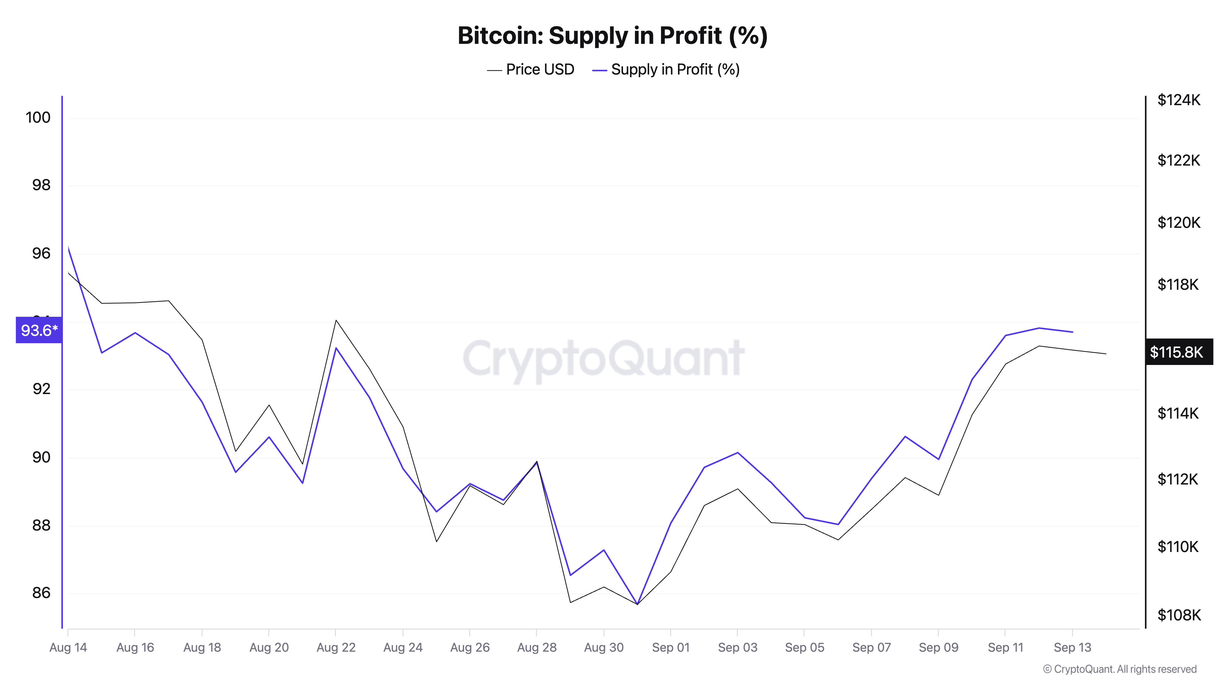Further strengthening the bullish outlook, data from CryptoQuant reveals that 93.6% of Bitcoin’s circulating supply is currently in profit, a trend that has historically been followed by strong bullish phases.