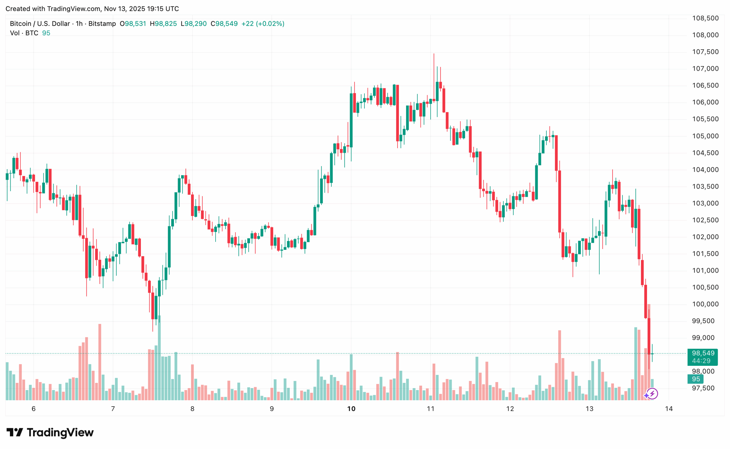 At the time of this writing, the cryptocurrency is trading below $99,000, charting a loss of around 2.6% for the day and over 12% for the past month.