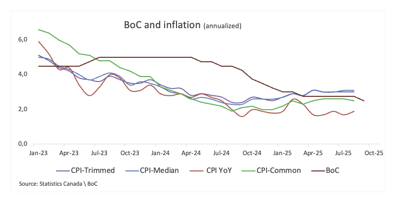 For markets, the headline CPI print will be the immediate focus. But at the BoC, attention will remain squarely focused on the details: the Trimmed, Median, and Common measures. The first two have remained near the 3.0% level, feeding concern inside the bank, while the common gauge has ticked a tad lower, albeit still above the bank’s goal.