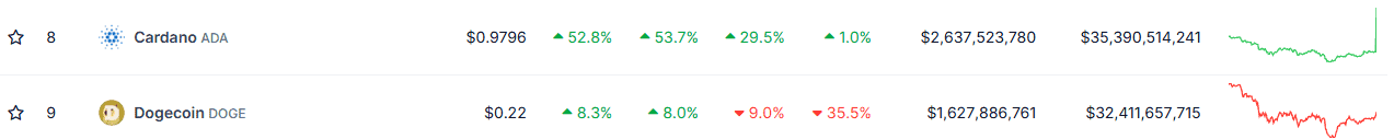 The post Cardano (ADA) Surpasses Dogecoin After 55% Surge appeared first on CryptoPotato.