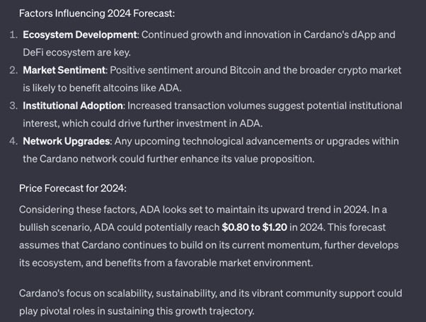 ChatGPT Predicts ADA Will Reach $0.80 to $1.20 in 2024