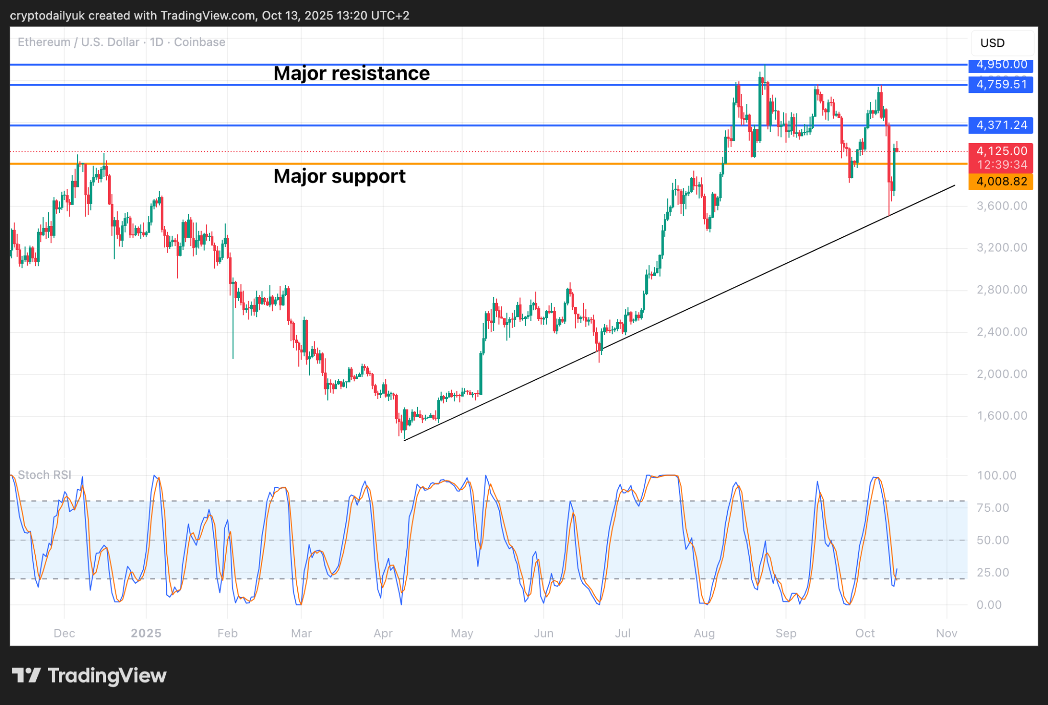 At one point the $ETH price fell through the major $4,000 support and even went below $3,600. Nevertheless, as can be seen in the daily chart above, a trendline held the price and a bounce took place from there. The major $4,000 support has been regained and it now remains for a possible confirmation of this to take place, which would bring the price back to the $4,000 mark before climbing higher.