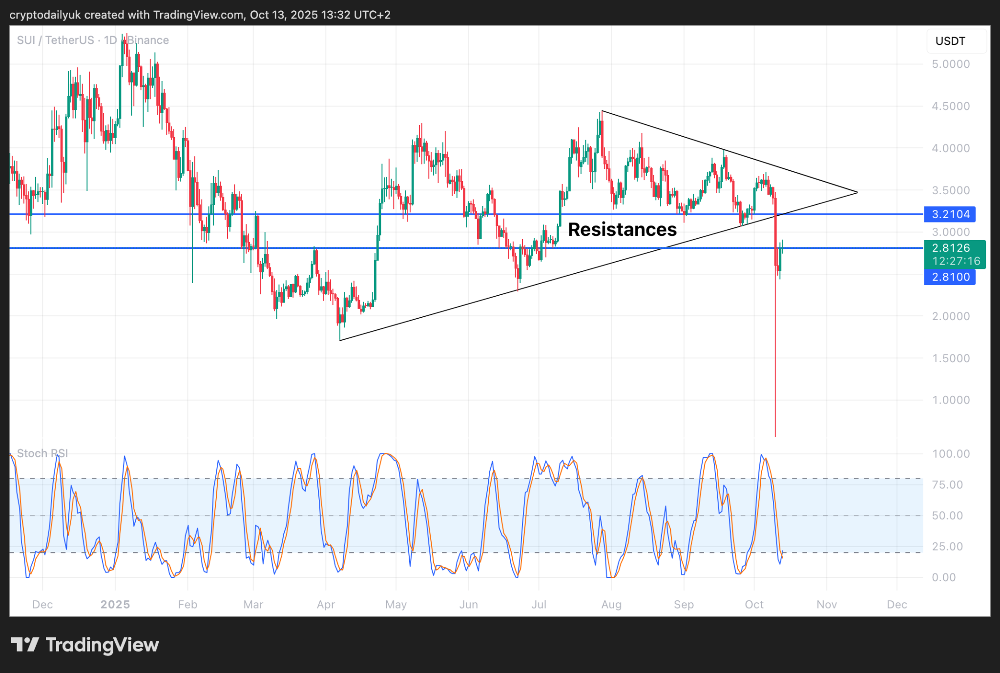Be that as it may, the price is now knocking on the door of the $2.81 resistance level. If the bulls can flip this into support again the bull market would be very much back on for $SUI. Retaking the $3.21 resistance level would be the next step.