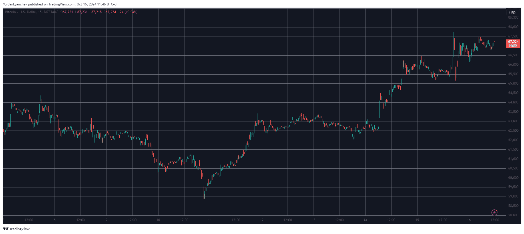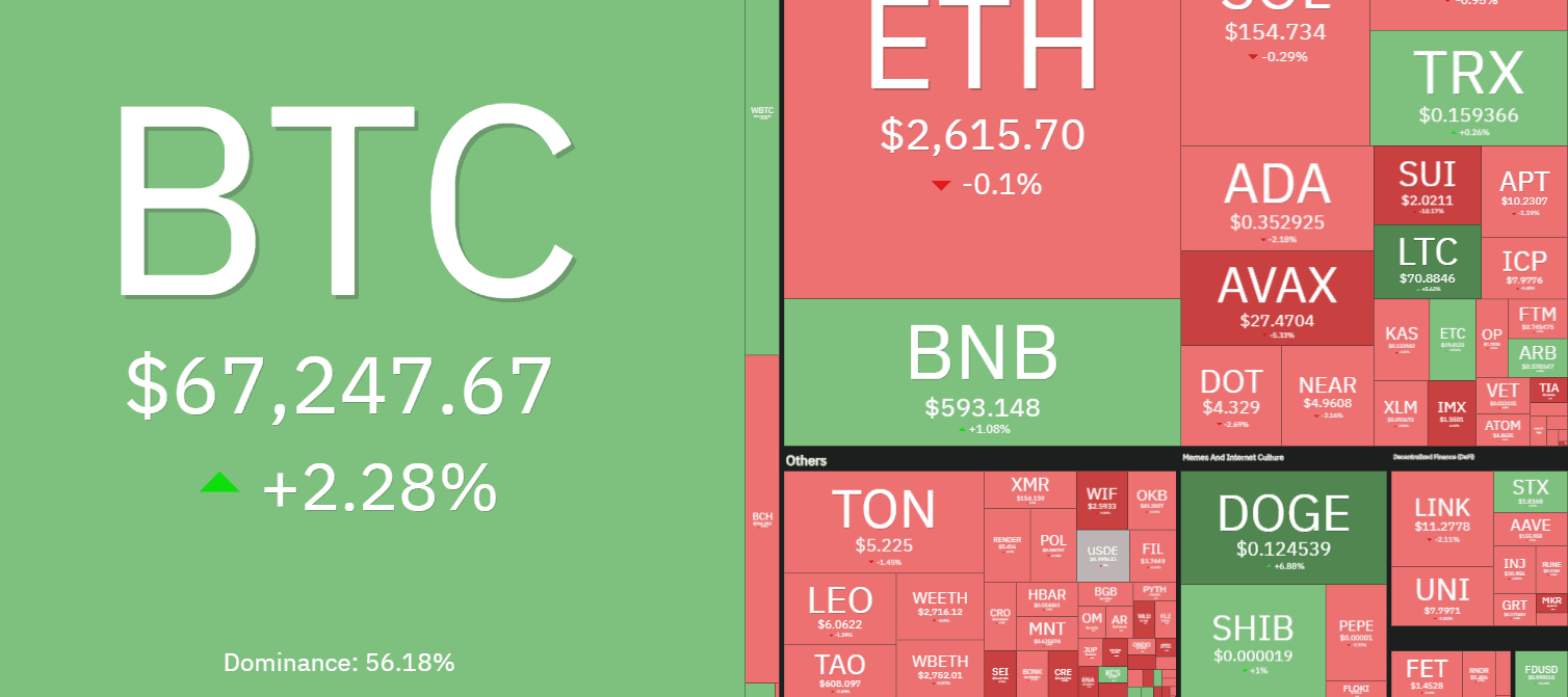 However, the aset failed to maintain its run at first and was pushed south by about three grand within minutes. Nevertheless, the bulls prevailed once again, and BTC currently trades above $67,000, being 2% up in the past 24 hours.