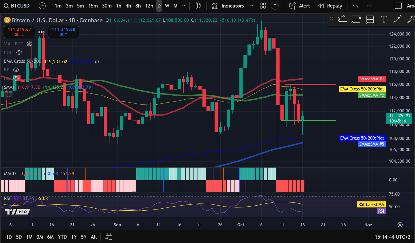 BTC and the crypto market crashed on Friday after President Trump announced 100% tariffs on Chinese goods and new export controls for software. The announcement was made in retaliation for China’s imposition of restrictions on rare earth mineral exports. As a result, BTC plunged to $102,000 on Binance before recovering and settling at $112,980. Selling pressure persisted on Saturday as the price fell almost 2% to $110,768. Despite the overwhelming selling pressure, markets recovered on Sunday. As a result, BTC rose nearly 4% to reclaim $115,000 and settle at $115,067. The price faced selling pressure and volatility on Monday, ultimately registering a marginal increase and settling at $115,274. Selling pressure returned on Tuesday as BTC fell to an intraday low of $109,945. It recovered from this level to reclaim $113,000 and settle at $113,068, ultimately dropping 1.91%. Sellers retained control on Wednesday as the price fell 2% to $110,804. BTC fell to an intraday low of $108,500 during the ongoing session, but has rebounded to reclaim $111,000 and is currently trading around $111,290, up 0.44%.