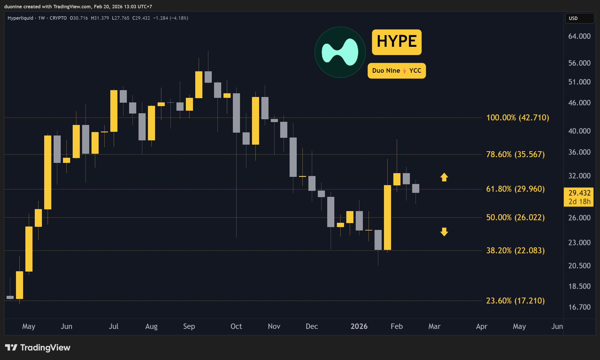 HYPE closed the week in the red with a 5% loss. This comes after a sharp rejection at the $36 and $30 resistance levels. Buyers are on the defensive, which could see the price fall lower up to the key support at $26.