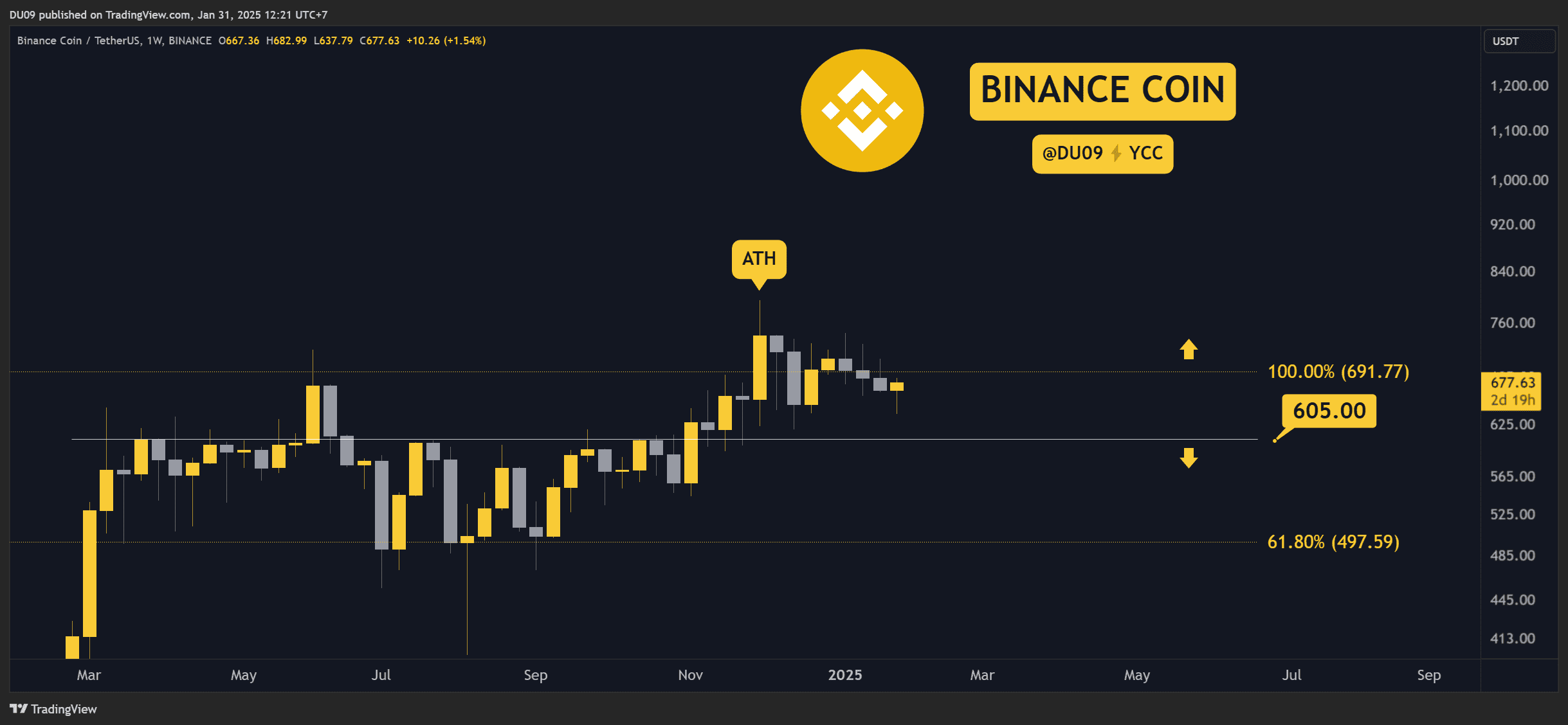 Looking ahead, BNB appears to consolidate around $600 and is well-positioned to make new highs should the market turn bullish again in the future. For that to happen, the asset will have to break above $690.