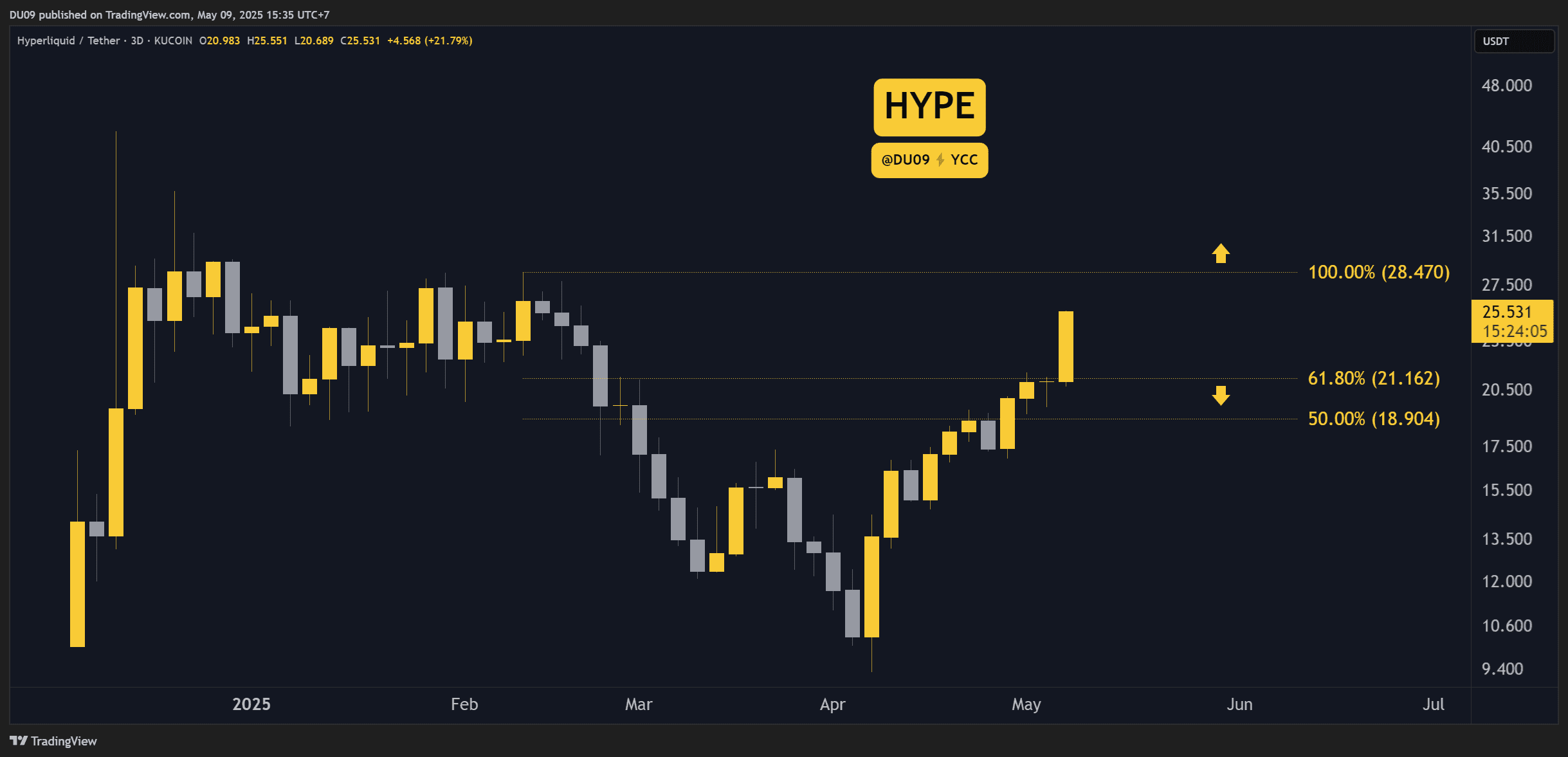 HYPE is the second-best performer on our list this week, with an impressive 21% price increase. The resistance at $21 was unable to stop buyers, who rushed to this cryptocurrency and pushed it towards $25 today.
