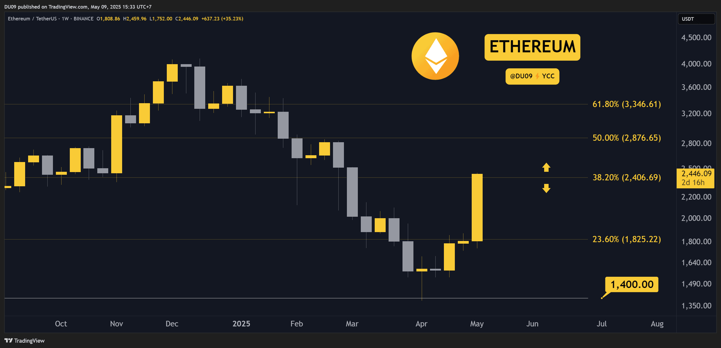 In an impressive reversal, Ethereum saw its price increase by 32% this week as it crossed above $2,000. At the time of this post, buyers are trying to confirm the $2,400 level as a key support. If successful, then ETH has a clear path towards $3,000 next.