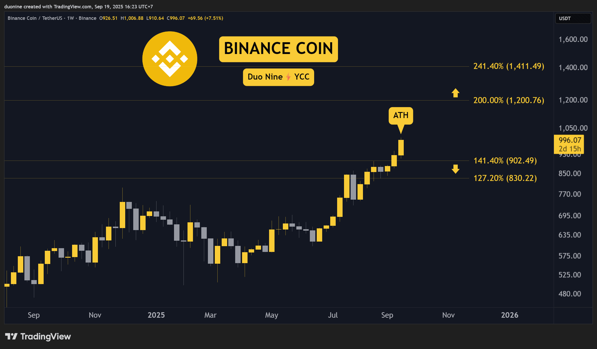 With the $1,000 valuation achieved, this cryptocurrency can now aim much higher. The next key target is found at $1,200, and $1,000 can act as support if buyers defend this level in the coming days.