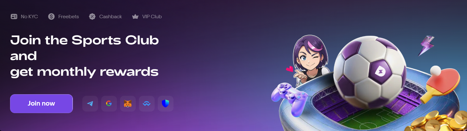 Players can register through email, Telegram, or Web3 wallets such as MetaMask and Trust Wallet. The platform supports more than 40 cryptocurrencies across 20 blockchain networks, allowing users to place bets with Bitcoin, Ethereum, USDT, BNB, TRON, and many other assets.