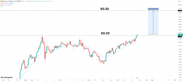 Now that the $0.20 resistance level has been taken out, analysts are setting their sights on even loftier targets for Dogecoin.