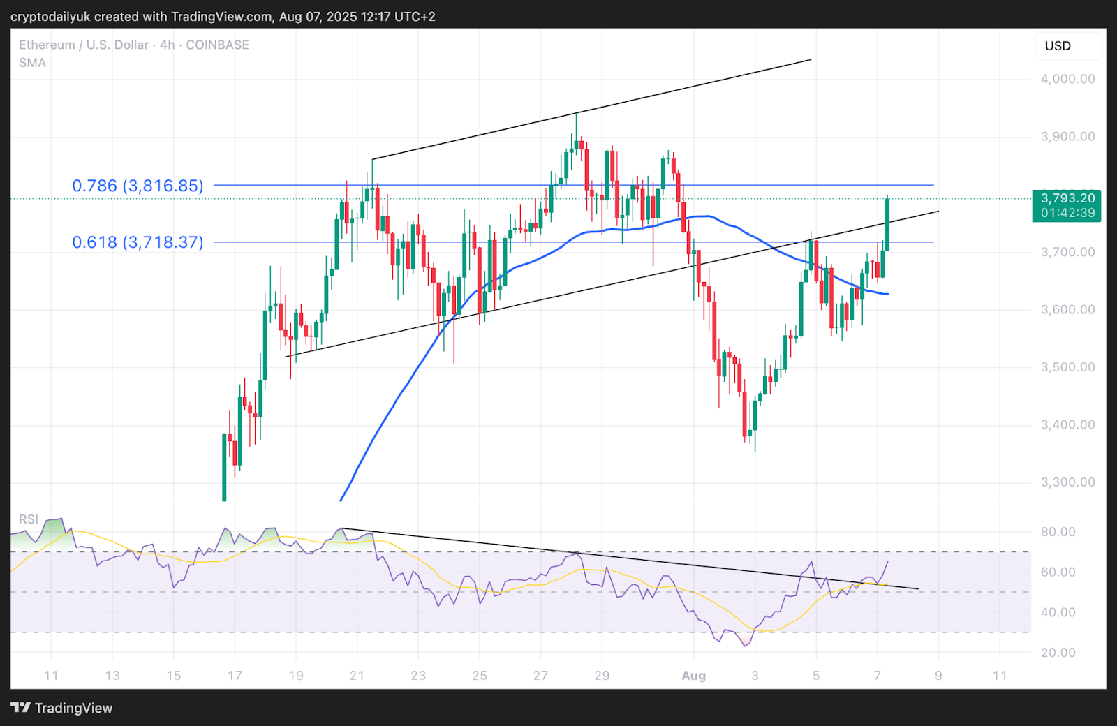 $ETH price heading back to $3,800