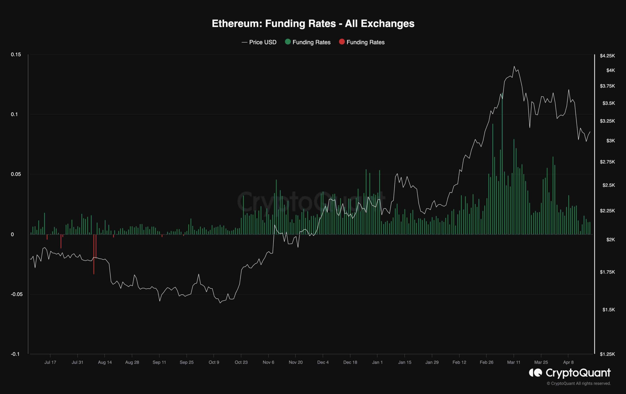 As Ethereum’s price exhibits signs of recovery, it’s crucial to determine whether this resurgence stems from spot buying or leveraged futures activity. A key metric for this analysis is the funding rates, where positive values signify bullish sentiment and negative values indicate fear in the market.