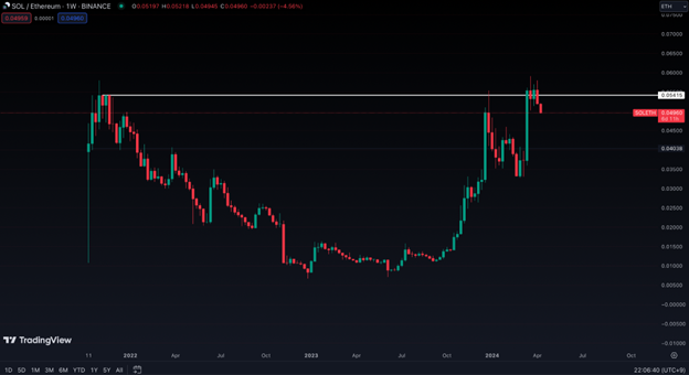 SOL’s recent pullback against ETH creates a rejection of its macro resistance level, a bearish sign for SOL but bullish for ETH.