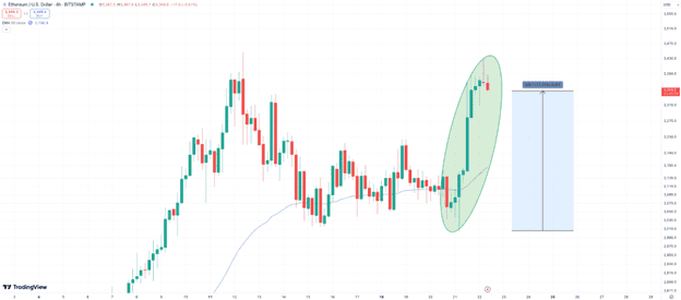 Ethereum buyers are on a rampage, pushing ETH past $3,400 earlier today.