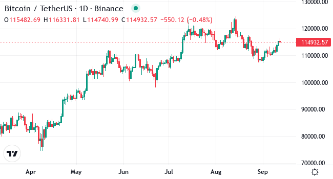 Bitcoin is currently trading between approximately $107,822 and $113,952. The cryptocurrency is showing a modest climb this week, with a 3.80% increase. After recent fluctuations, its performance over the last six months has soared by over 36%. Traders are keeping a close eye on the key resistance level just below $117,000. If Bitcoin continues on its upward path, it might aim for the second resistance near $122,889. While short-term movements have been mixed, the longer-term potential indicates possible growth as new highs are reached. As usual, the market will decide if these gains hold, but optimism remains regarding upward momentum.
