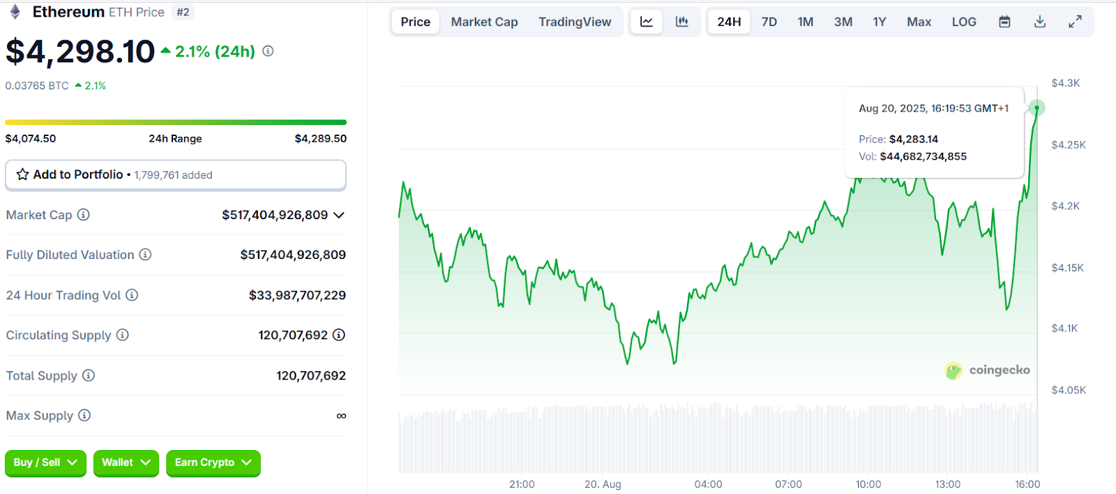 Ethereum Price Chart | Source: CoinGecko
