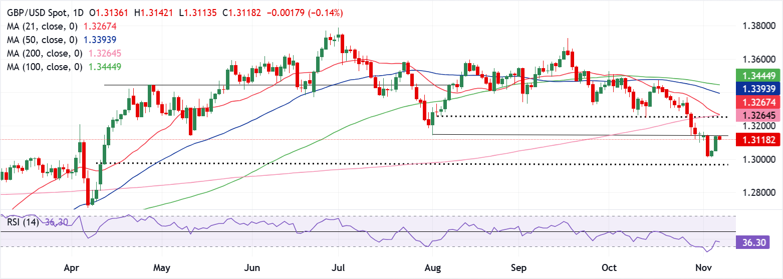 As observed on the daily chart, GBP/USD is struggling at the previous strong support-turned-resistance at 1.3142 on the road to recovery.