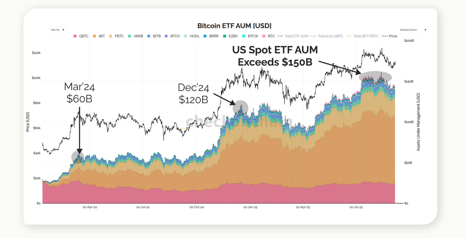 Market analysis shows BlackRock’s IBIT capturing most of AUM share after launching options in late 2024, with US ETFs commanding nearly 90% of global flows—underscoring derivatives as the actual driver of market dynamics. IBIT dominance aligns with reports of US ETFs shaping almost all new inflows, reinforcing the country’s outsized role.