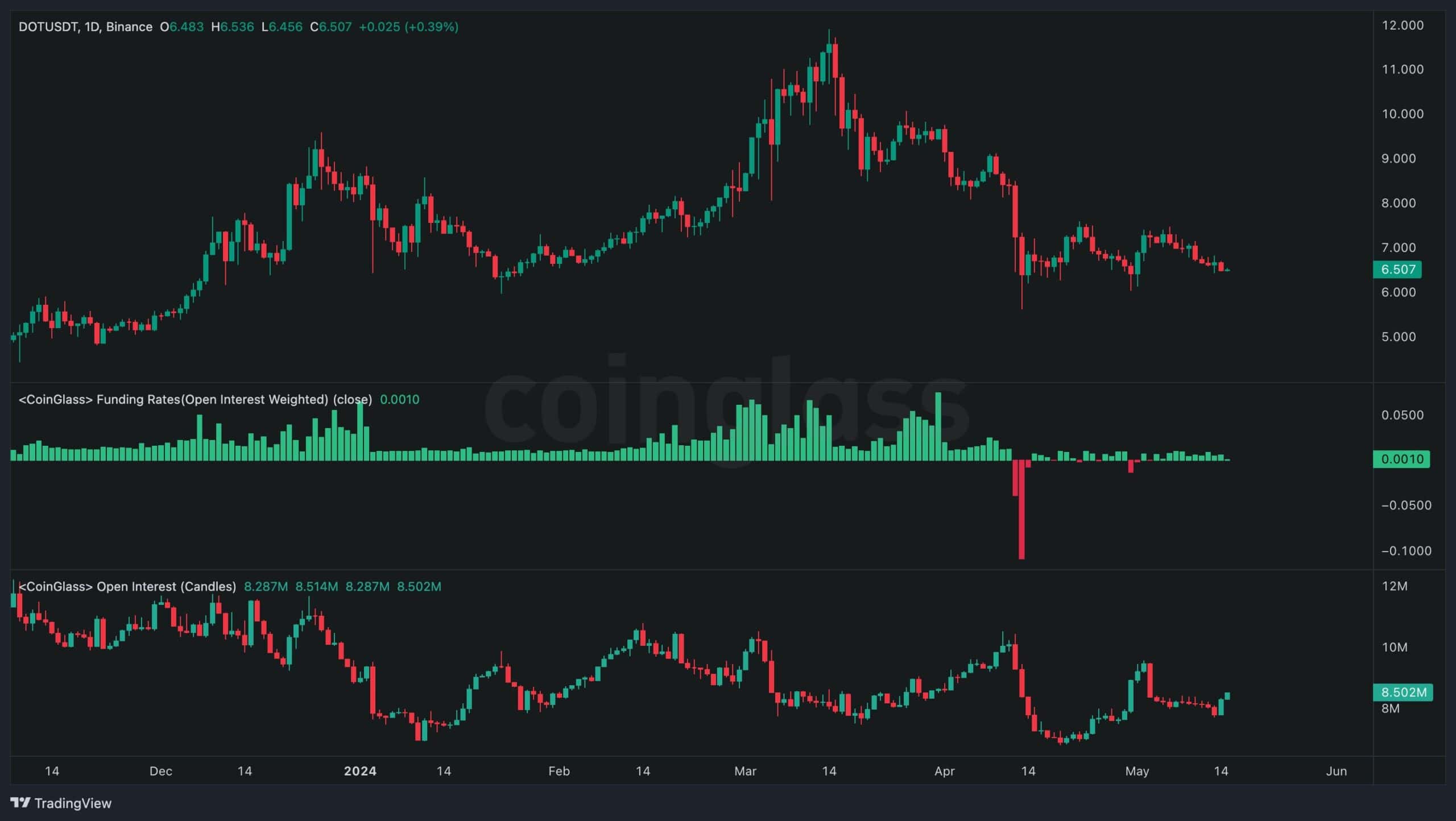 Given the recent uncertainty surrounding Polkadot’s price trajectory, it’s vital for participants to delve into futures market sentiment to gauge the cryptocurrency’s future potential. The accompanying chart illustrates key metrics such as Open Interest and Funding Rates in conjunction with Polkadot’s daily price movements.