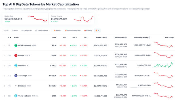 In fact, the total trading volume for AI-related digital assets has rocketed by 37% in the past day.