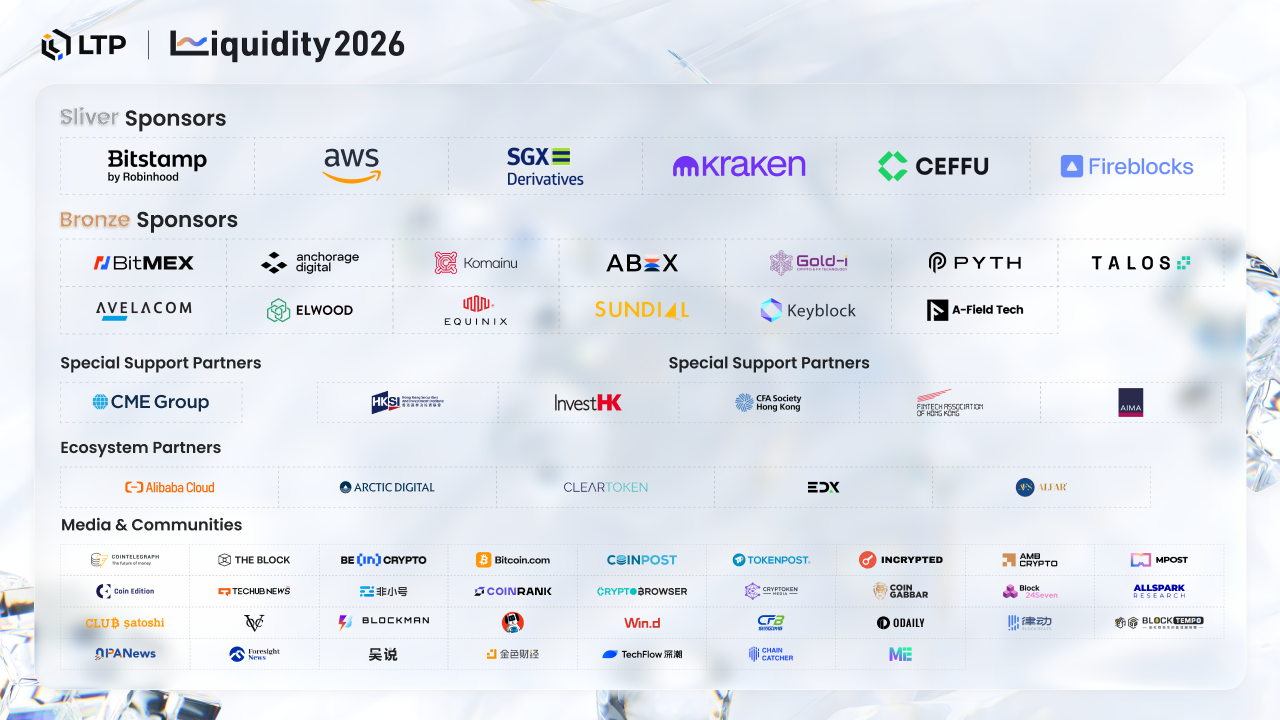 Furthermore, Liquidity 2026 benefits from special support from partners like CME Group, as well as supporting partners including HKSI, InvestHK, CFA Institute, AIMA, and the FinTech Association of Hong Kong (FTAHK). The event is also backed by ecosystem partners such as EDX, Alibaba Cloud, Arctic, ClearToken, Certik and AlfaR, collectively contributing to the creation of a comprehensive institutional dialogue on the future of multi-asset and digital market infrastructure.