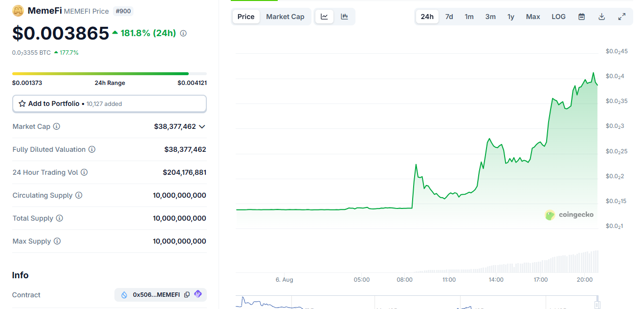 Traders holding short positions were forced to cover quickly, resulting in intense buy orders that drove MEMEFI’s spot price up by over 190% in 24 hours.