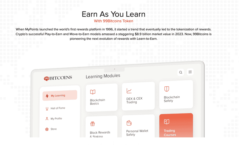 Investors looking for the next big crypto trend are turning to a new learn-to-earn (L2E) token called 99Bitcoins Token ($99BTC). It’s the native token of the well-known 99Bitcoins platform that teaches people about Bitcoin and other cryptos.