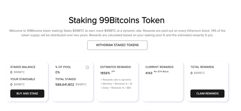 Over 586 million $99BTC tokens have already been staked on the platform.