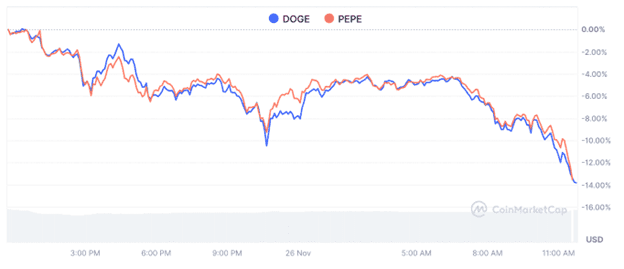It’s been a tough few days for Pepe and Dogecoin holders.