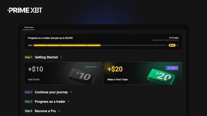To earn the coveted title of Pro Trader, users must complete at least 10 tasks across the four steps. This achievement represents a milestone in their trading journey and comes with potential benefits and recognition within the PrimeXBT community.
