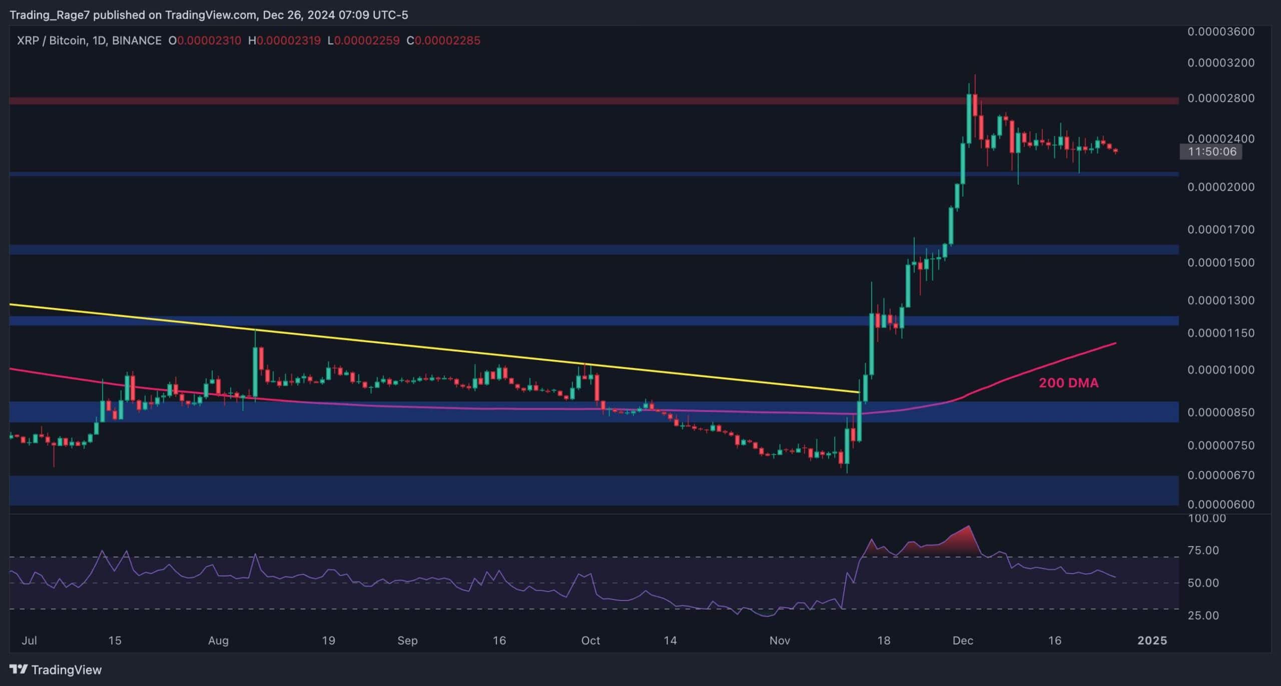 The XRP/BTC chart also shows a quite similar picture, as the price has failed to continue above the 2800 SAT resistance level and has been quickly rejected to the downside.