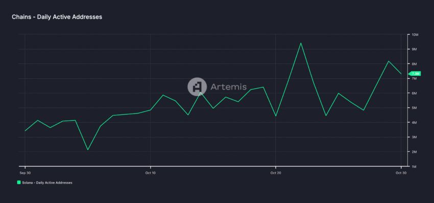 Layer-1 (L1) blockchain Solana saw a surge in user demand in October. During those 31 days, Solana’s monthly user activity climbed to its year-to-date high.